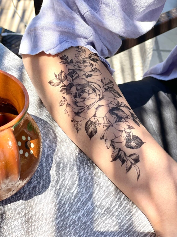 Black Rose Ink Temporary Tattoo Floral Tattoo Sexy Tattoo Etsy Uk